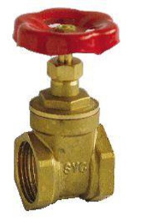 VÁLVULA DE COMPUERTA EN LATÓN PN 16. Rosca Gas, ISO 228/1. Temp. máxima 80ºC. Cierre disco de latón. Maneta roja de acero